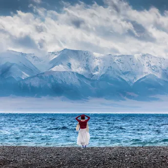 蓝色的湖泊,巍峨的雪山,构成了优美的自然美景。