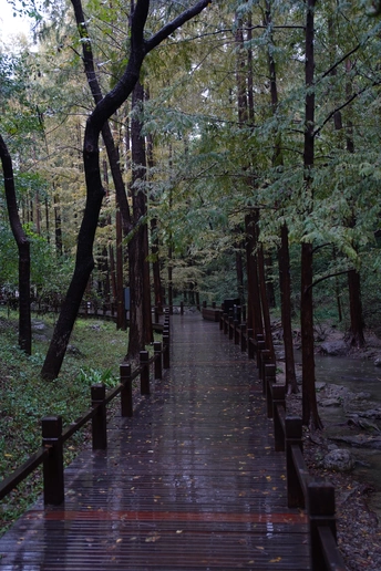 第一次在雨中拍摄北京植物园水杉树和雨中的植被