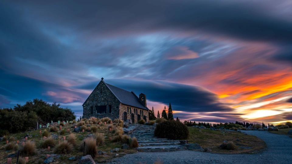 新西兰马瑟森湖河牧羊人教堂风光