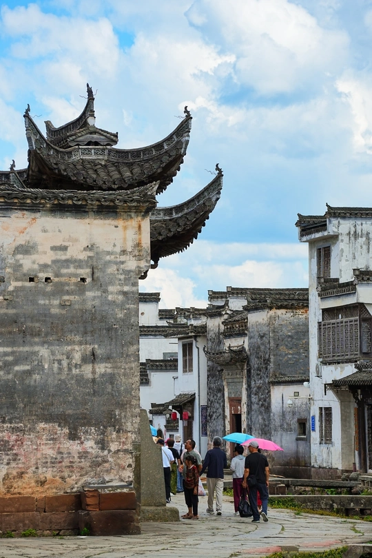 白墙黛瓦,马头翘角,徽派建筑如一幅水墨长卷,在皖南的青山绿水间徐徐展开。 色彩与线条的韵律 徽派建筑以黑白为主调,粉墙如宣纸,黛瓦似墨痕,偶尔点缀的木雕彩绘,又添几分灵动。高低错落的马头墙不仅是防火的智慧,更形成起伏的天际线,如行云流水,与远山遥相呼应。 雕刻与结构的匠心 推开厚重的木门,精雕细琢的梁枋、雀替、窗棂映入眼帘。人物山水、花鸟鱼虫,刀工细腻,寓意吉祥。天井居中,四水归堂,既采光通风,又暗合聚财纳福的朴素愿望。 人与自然的共生 建筑依山傍水而建,石板路蜿蜒,溪流穿村而过。青砖小瓦的民居与稻田、古树相映成趣,仿佛从土地中生长而出。晨雾中,炊烟与云霭交织,宛如仙境。 徽派建筑的美,是工匠的智慧,是文化的沉淀,更是人与自然和谐共生的永恒诗篇。