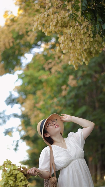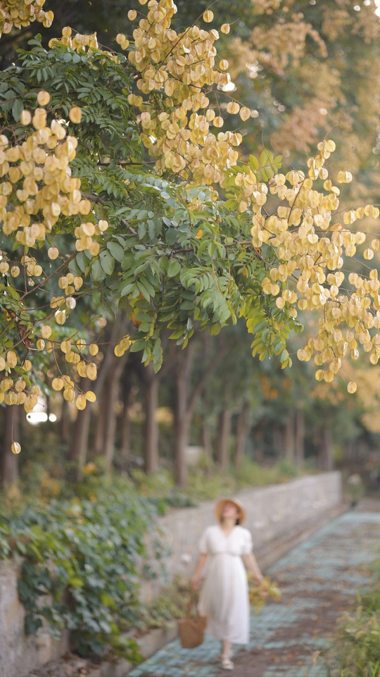 国庆假期哪儿都是人,没出远门,回趟老家。给老大拍的栾树下。不红,很秋天。???