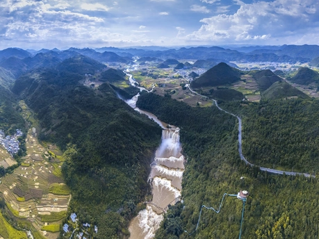 当丰潮季节到来,罗平九龙瀑布展现出其壮丽的姿态。
