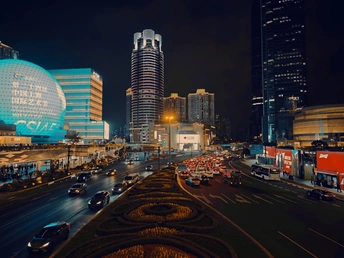 夜晚的徐家汇,灯火璀璨,车水马龙