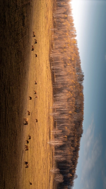 【闯入内蒙的秋,美到失语‼️我把童话世界搬给你看了?】 这里没有滤镜,却比油画更浓烈? 九月的风一吹,草原褪去青翠, 换上金棕与赭红交织的奢华地毯, 像神明打翻了熔金调色盘?