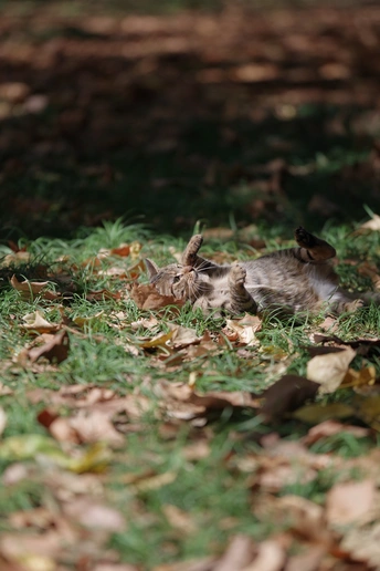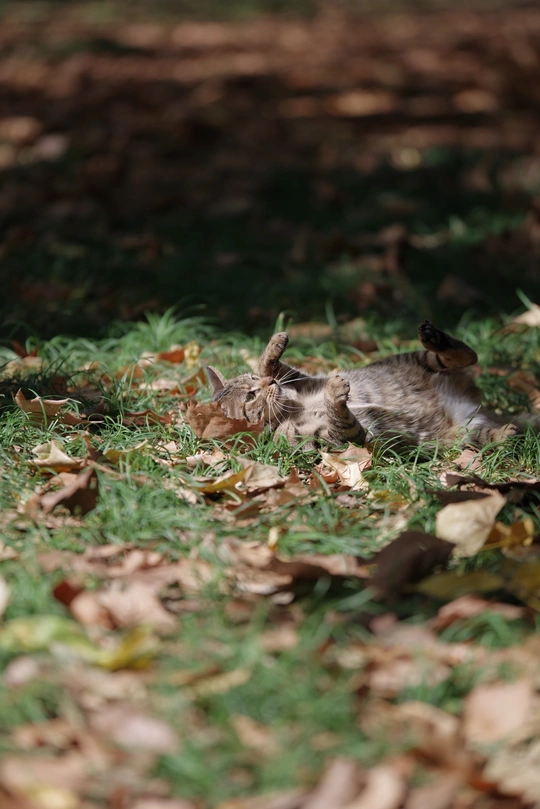 在秋日暖阳里晒太阳的狸花猫,舒服得打了个滚。