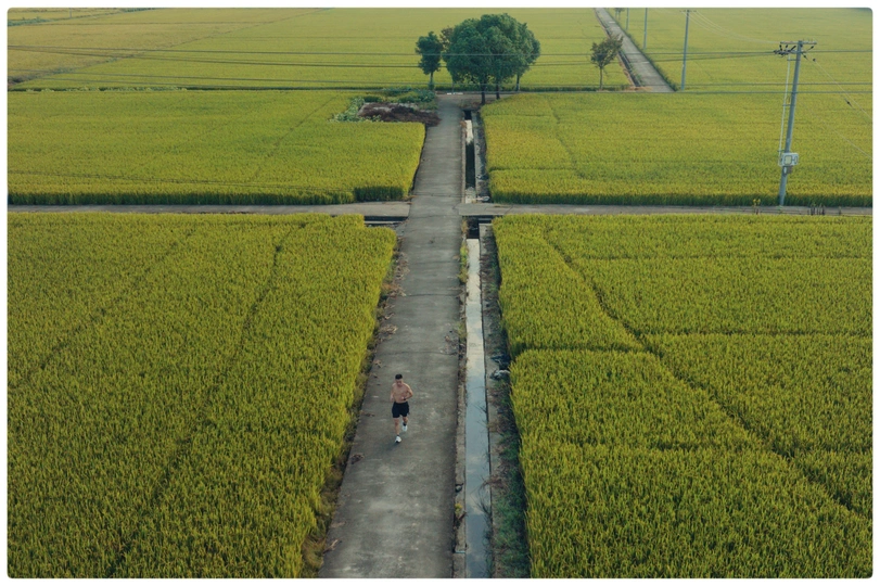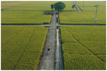 看看现在的田间小道,想到小时候在田埂上一身烂泥的模样