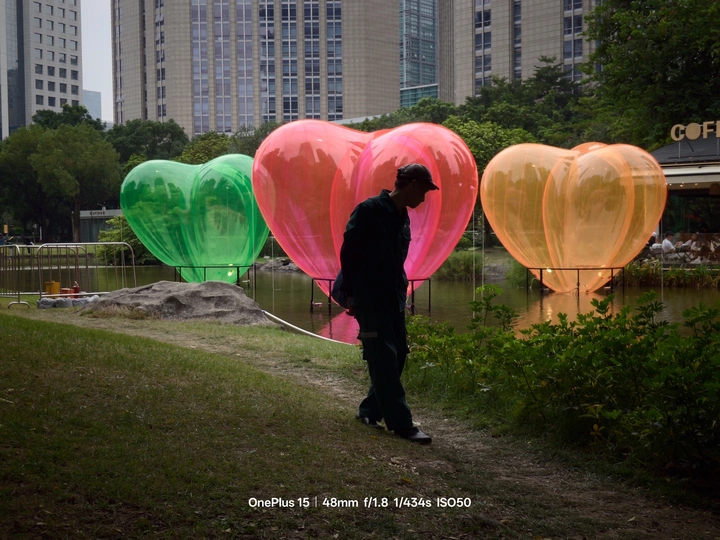 很多人担心这一代的一加没有哈苏影像的加持?拍照 还能像以前那样吗??我只能告诉你,该有的还是有 的,在拍照界面上依旧还是能看到“大师模式”的拍摄 界面,而且我这次很多照片都是在这个模式下拍的, 直出感觉就够了! 然后,一加15引入了OPPO的「LUMO凝光影像」 技术,这一技术能够提升照片的光影表现,使得照片 在细节和色彩上更加丰富和真实。 从我拍完照片来看,一加15在拍摄自然景象时表现出 色,能够很好地捕捉到光影的细腻变化和场景的层次 感。特别是在低光环境下,照片的噪点控制和色彩还 原都表现良好。 📍:花城汇广场 📱:一加15