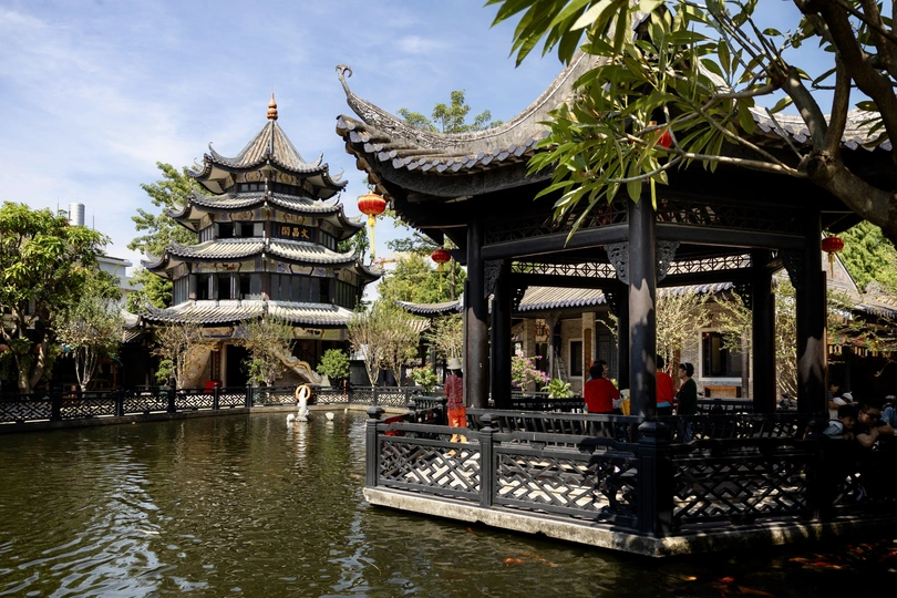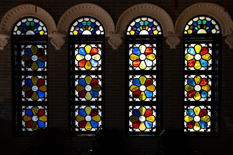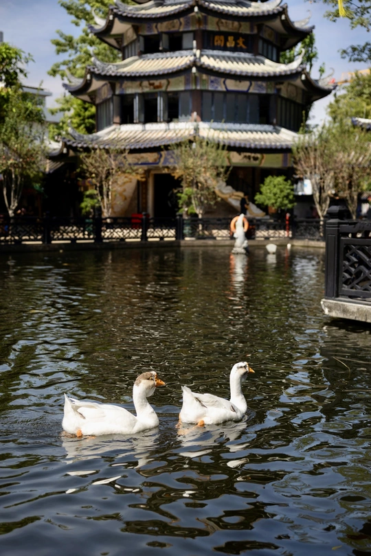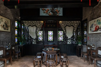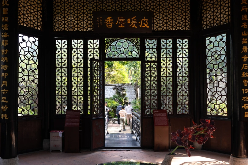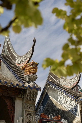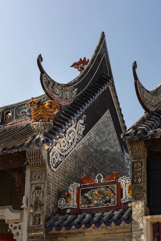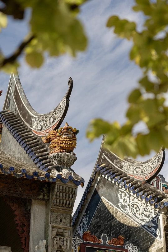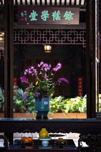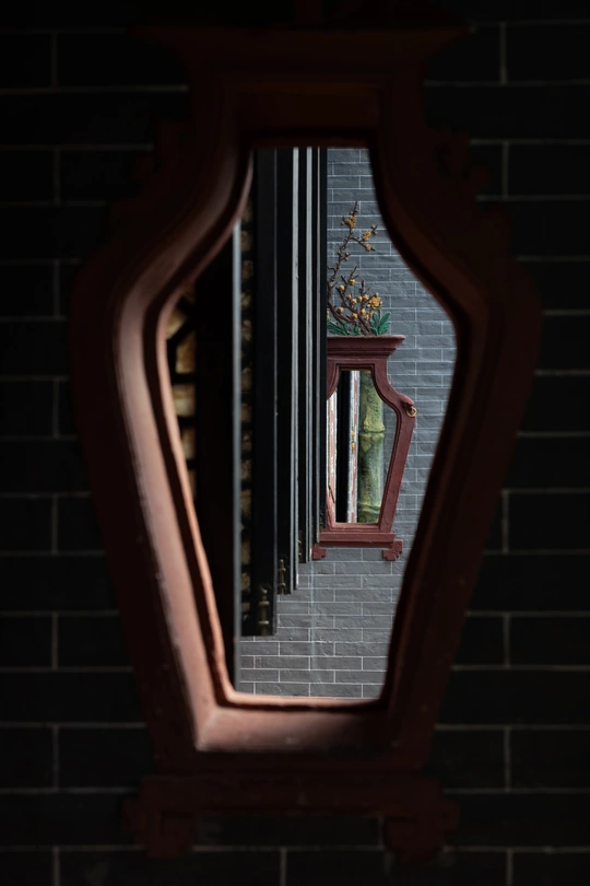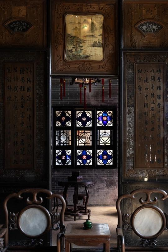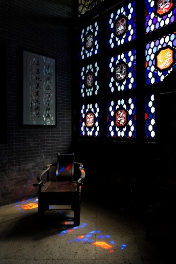 余荫山房,岭南园林的精巧在此完美呈现。飞檐翘角间,是精美的灰塑与木雕,细腻又灵动;彩色玻璃窗把阳光剪成斑斓的花,像是发光的画;亭台楼阁、家具器物…一步一景都透着古典与雅致。