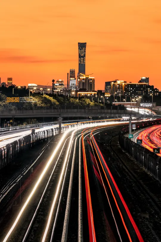 为拍北京黄昏的进站瞬间,坐了1小时地铁、狂奔1公里,蹲守40分钟。当列车驶过,拖出金色的光轨,这一切的奔赴都值了!