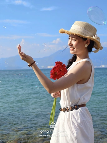 在海边,好像找到了拍照的关键⁉️ 再次来到海边 尝试下4Klive图 · 三个姿势告别游客照⁉️ 侧逆光站位 草帽微微倾斜 让海风自然吹动裙摆 · 手捧鲜花看镜头 身体扭转45度 脚踩沙滩显腿长 · 栏杆倚靠杀 单手扶帽歪头笑 · 原片直出的秘密 1️⃣下午4点黄金光线 海面波光粼粼自带滤镜 2️⃣白裙和草帽经典CP,与蓝海形成高饱和撞色 · 手机拍摄小技巧 1️⃣开启网格线构图 人物放在右下交叉点 2️⃣放大3倍, 避开杂乱背景 3️⃣实况模式选最佳帧,怎么选都清晰