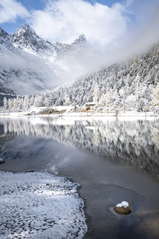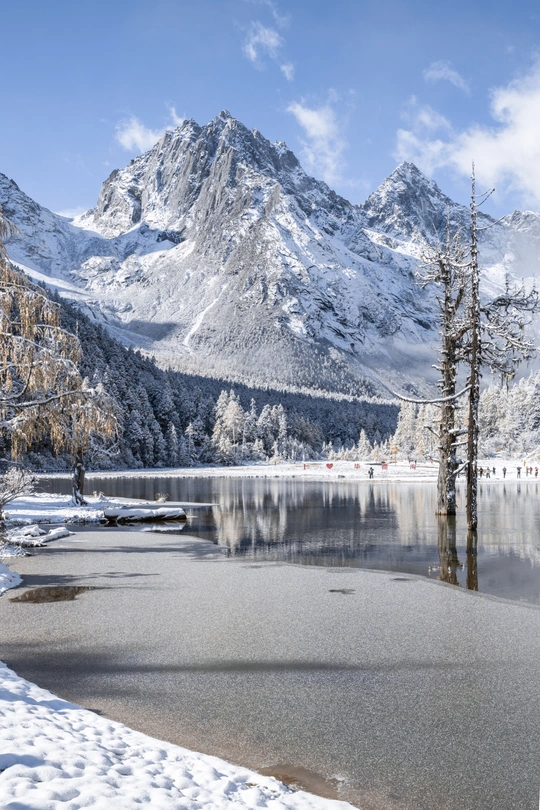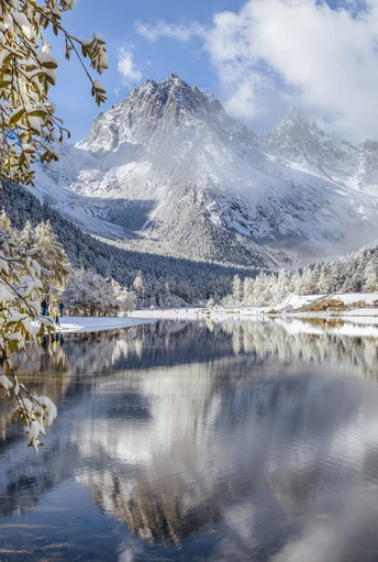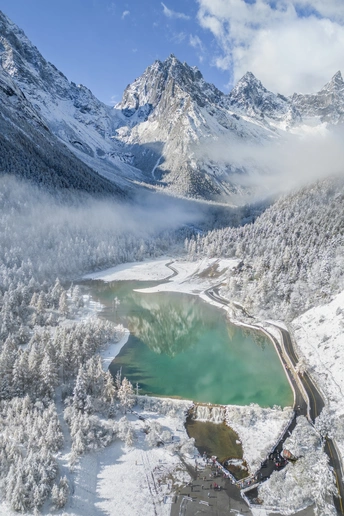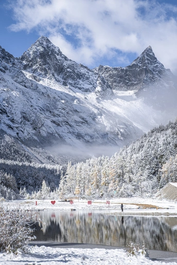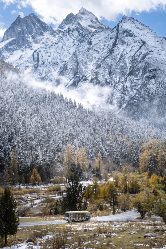 彩林季节的毕棚沟不下雪像油画下了雪像童话