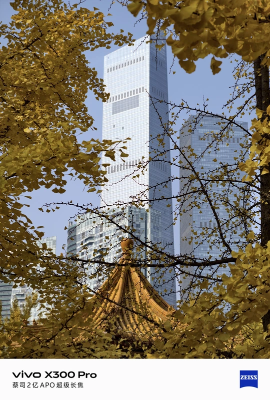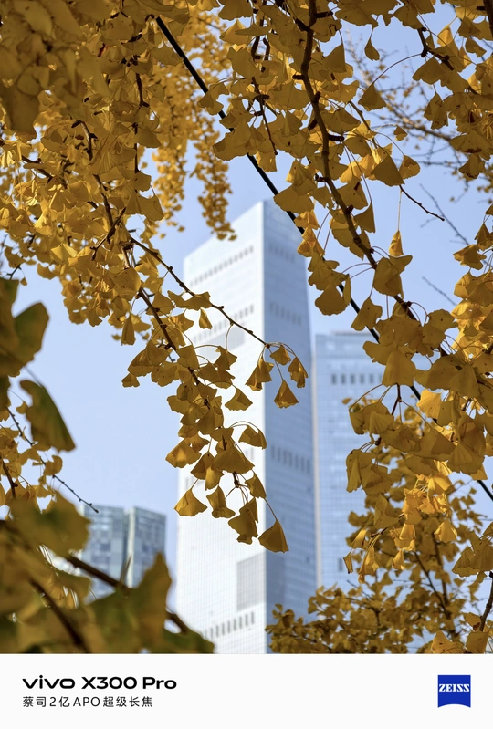 “大连劳动公园的银杏黄了—— 古檐翘角接住碎金,摩天楼厦浸在秋光里,连风都裹着银杏叶的暖香。 捡片叶子折成花,把劳动公园的秋,别在树桠上。 得益于vivoX300pro的2亿像素长焦,无论是银杏细节,还是远处楼宇都记录的一清二楚。这大概是大连最温柔的季节,连钢筋森林都软在了银杏的金色里”