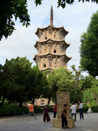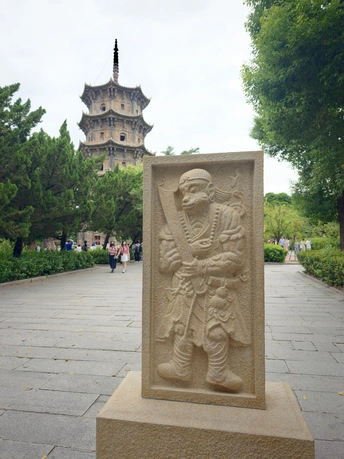 前不久的《黑神话·悟空》游戏又带火了泉州开元寺东西双塔(镇国塔、仁寿塔),游戏里取景双塔,孙悟空原型取自西塔上第四层上的猴行者浮雕。为了让游客看得更清楚,寺院放大复制了一尊猴行者浮雕供游客观看。 探寻历史,泉州开元寺东西塔建成时,距离玄奘西行求法已过去约600年,玄奘的事迹早已在民间广为流传。南宋末期有《大唐三藏取经诗话》问世,话本中出现了护送玄奘西天取经的“猴行者”形象,而东西塔建成时《诗话》话本尚未问世,同样《西游记》也是建塔300年后才问世。有观点认为,后来《诗话》中的猴行者衍化为《西游记》中的齐天大圣孙悟空,东西塔上的猴行者便是其原型。不仅如此,双塔上还刻有观世音菩萨、唐三藏、东海火龙太子。 那么双塔上的猴行者又来自哪呢? 另有观点认为,东西塔上的猴行者是印度神话史诗《罗摩衍那》中的神猴哈奴曼。它沿着海上丝绸之路来到刺桐城(泉州),落户开元寺,是多元文化融合的产物。孙悟空当是中国作者在哈奴曼等神猴形象上有所发展创新,并加以幻想润色最终塑造而成。 P4-P7 为东塔,P8-P11 为西塔