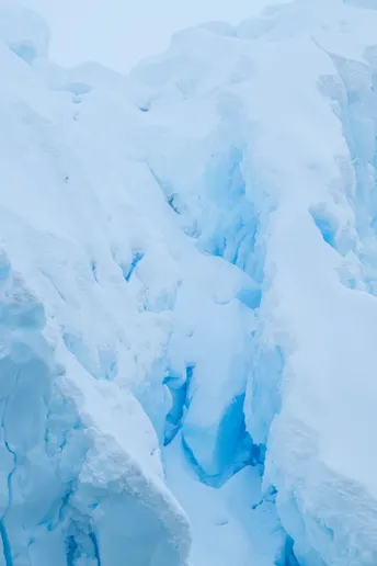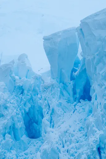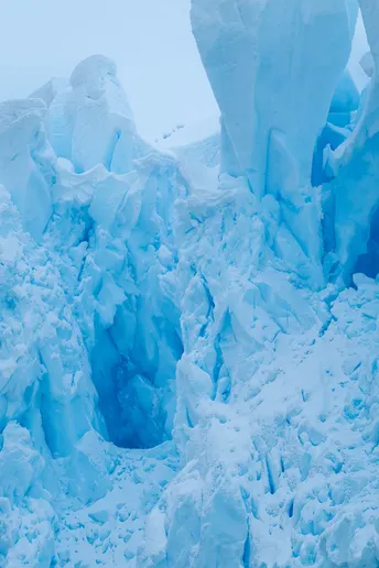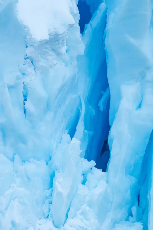 阳光穿透厚重的冰层, 折射出深邃而纯净的色泽, 如海,又似天空的碎片, 在无垠的白与灰之间, 独自闪耀着静谧的光。 每一道裂纹都藏着时间的痕迹, 那是万年寒冷与孤寂的雕刻。 站在冰川前, 你会感到自己渺小, 却又仿佛与这片永恒融为一体 这里,没有喧嚣, 只有风、海浪与冰的低语