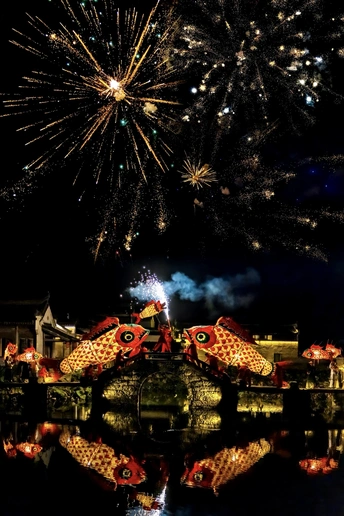 呈坎的夜晚,鱼灯游弋,烟火璀璨,恰如辛弃疾笔下的“一夜鱼龙舞”,满是热闹与浪漫。