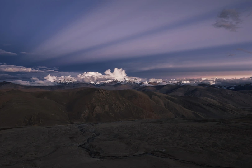柔光裹着雪线与荒原,薯条光漫过冰溪石径,高原的黄昏在光影里沉淀成诗