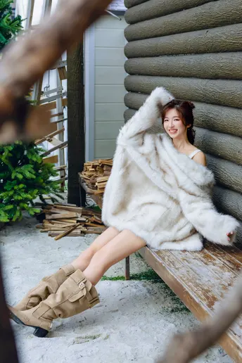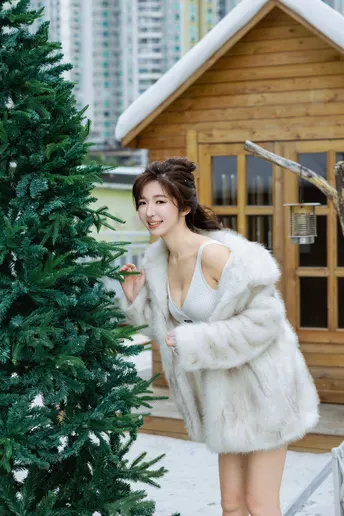 《雪季絮语》 出镜:童童 地点:广州市二宫 雪光映白绒衣,她张开双臂拥抱落雪。 指尖轻触圣诞树梢,木屋串灯在微笑中渐次亮起,将冬日酿成童话。