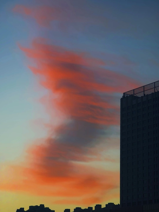 楼宇裁碎了绯色的云, 晚风吹软天边的褶皱。 这是城市把浪漫, 藏进黄昏的边角。