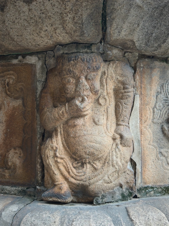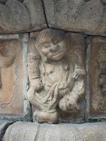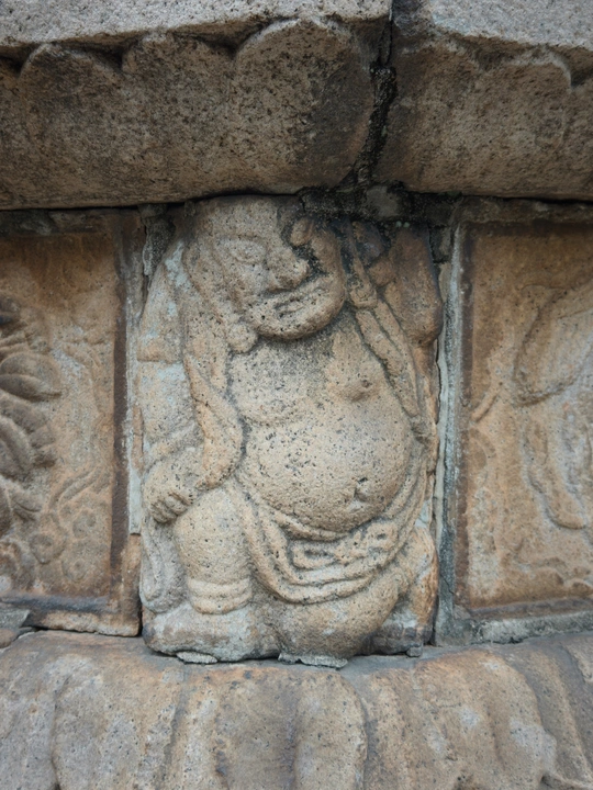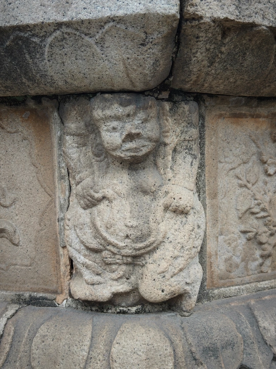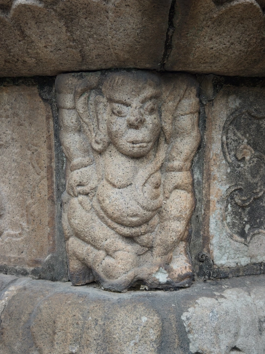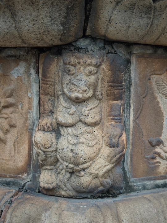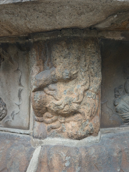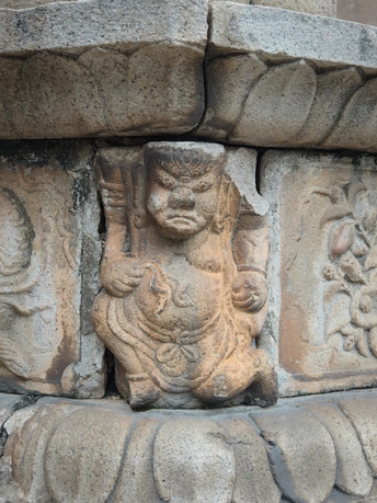 在泉州开元寺双塔的须弥座束腰转角处,有着倔强的“打工人”,正日复一日身托巨塔,这些被称为“塔奴”,在佛教建筑中,塔奴指的是托塔力士,象征着守护和辟邪。 他们大多袒露着上半身,有的一脚屈膝,以脚尖撑地,双手紧紧抓着两侧衣裳,仿佛皱着眉头,正用双肩使劲往上顶;有的双手拉着衣裳,抬起一只脚,歪着头似乎正在歇口气;有的半蹲着身子,双手撑着膝盖,瞪大双眼直视前方,好像正憋着一口气,将双肩往上用力顶起;有的缩着肩膀,提着衣裳,双目紧闭,“认命”顶塔。 其中有一个“吹哨子的人”,把拇指和食指放在嘴里作吹哨状好像是个领头的指挥大家一起出力。