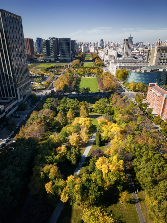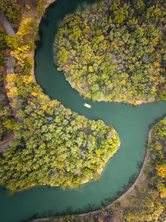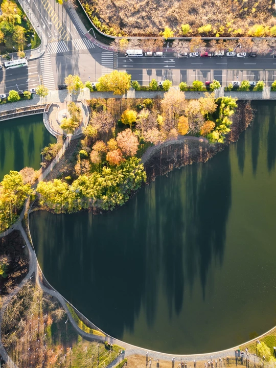 进入秋天,滨城便被层层金黄裹挟。泰达城市公园的林木尽染金黄,如一片波澜壮阔的金色海洋在蓝天下铺展,树影深浅交错成自然的肌理,风过处叶浪起伏,从高空俯瞰,斑斓色块肆意晕染,活脱脱一幅被大自然打翻的调色盘,与周边楼宇的现代感碰撞出独特的城市秋韵。而泰丰公园亦毫不逊色,潋滟水波将秋树的绰约身影揉碎在涟漪里,在钢筋水泥的城市森林间,这份灵动温柔恰似一抹诗意的留白。