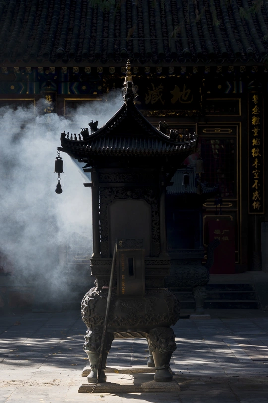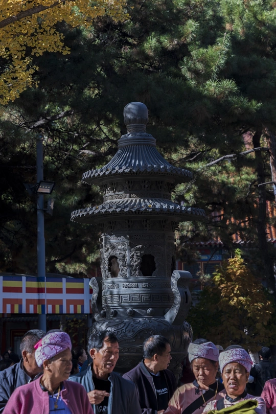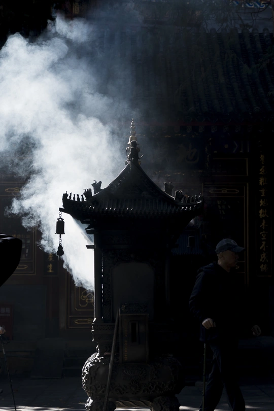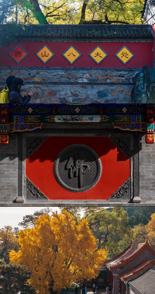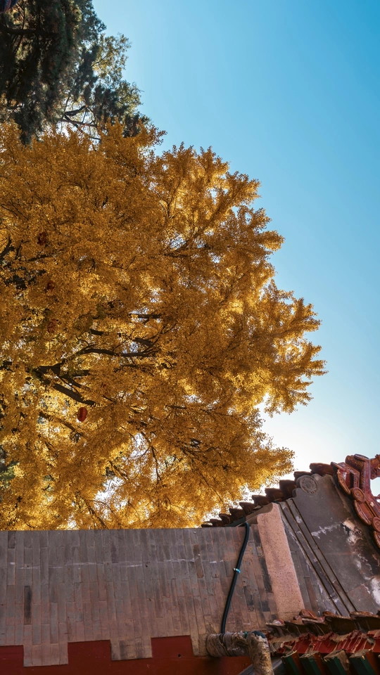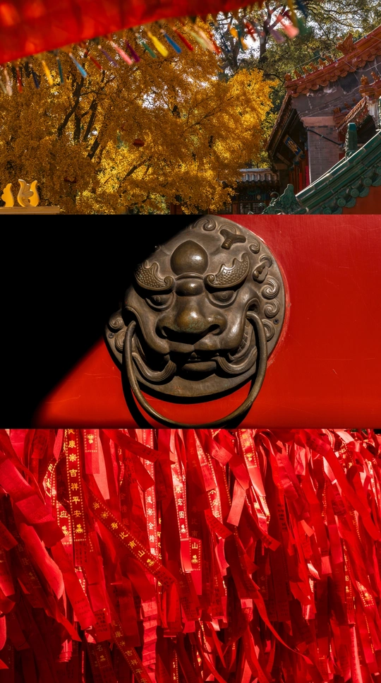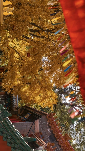 秋阳裹着银杏的金,漫过古寺的青瓦红墙。绿琉璃檐角坠着光阴,朱墙上“佛”字沉在光影里,铜狮凝着岁月的温,香雾绕着塔铃轻晃——这一季的禅意,是黄与红的撞色,是烟火与古意的共生,连风过处,都裹着几分不慌不忙的温柔。