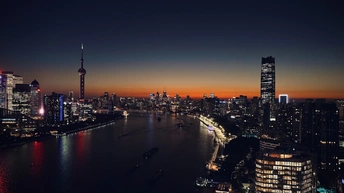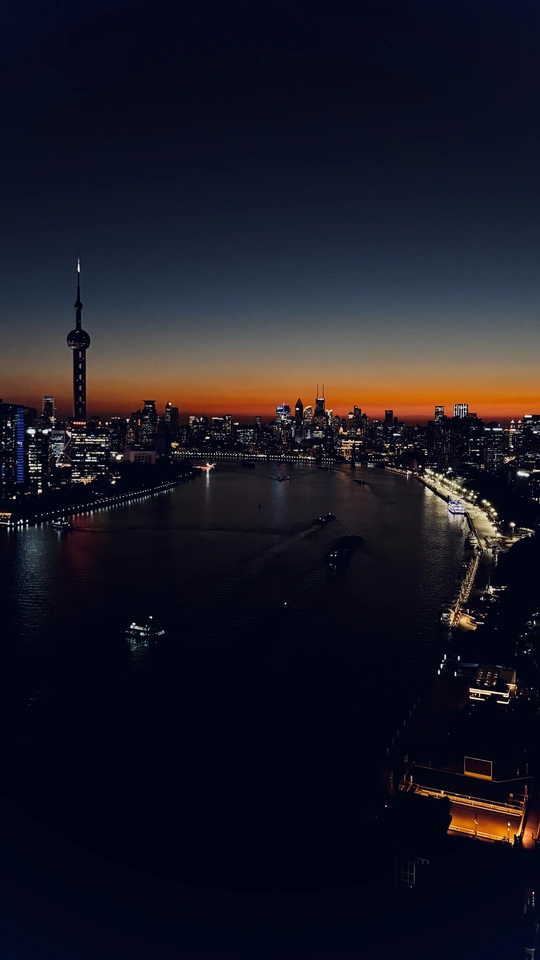 北外滩夕阳的余晖,东方明珠的灯光还未开启,城市的霓虹已经点亮