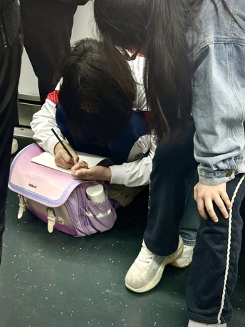在回程的地铁上,一个女孩蹲在地上画画。另一个女孩在看她画画。 我会想到那些父母口中拖拖拉拉不肯行动的孩子。是什么让她会主动出击?是什么原因让他们失去生活动力?失去了兴趣。这就最重要的一点。