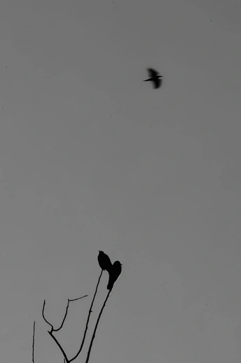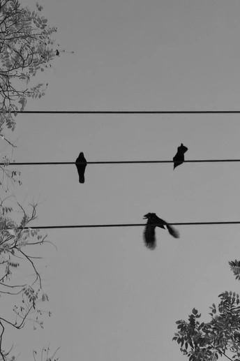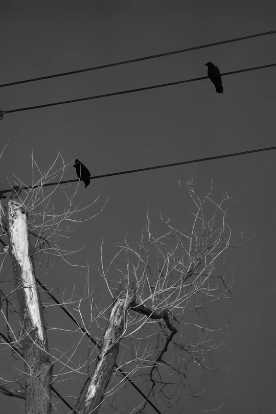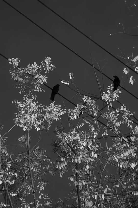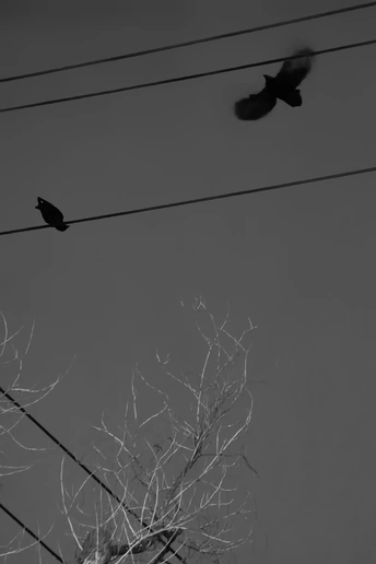 冬日傍晚,在北京街头,枝桠和电线稳稳托着乌鸦的黑色轮廓。它们的影子轻得像悬着的情绪,每帧都裹着慢半拍的静。