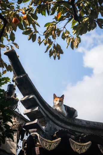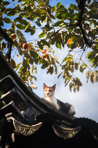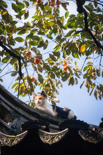 这颗柿子树下睡着一个三花“小屁股”,它的妈妈一直守在边上等它睡醒。。。真的是有妈在什么都无所畏惧