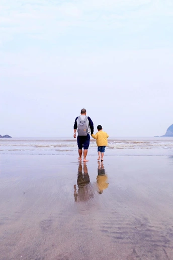 同一片大海,同一个孩子。记得第一次带你来到这片海,你紧紧牵着爸爸的手,一步也不肯放。慢慢的,慢慢的…你越来越不需要爸爸的手了。如今,你的身高都快赶上爸爸了,再不需要爸爸牵着手去走完这片海了。你的故事还在继续,我会继续记录。加油吧,我的男孩子。