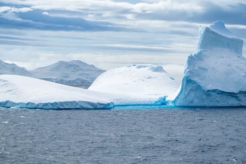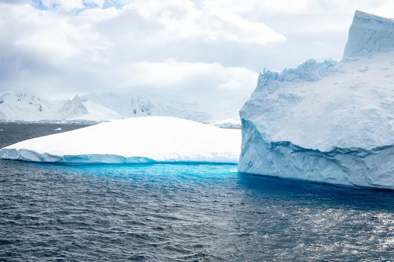 南极海面上漂浮的蔚蓝冰山, 像是时间深处沉睡的宝石。 万年寒冰被压得纯净透亮, 在阴晴不定的极地天空下, 蓝得深邃、蓝得安静、蓝得不可思议。 当浪花轻轻拍打冰山的棱角, 那抹蓝色便在海面上晕开, 仿佛极地偷偷藏起的一口清澈呼吸。