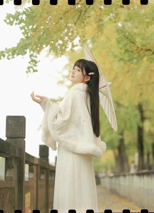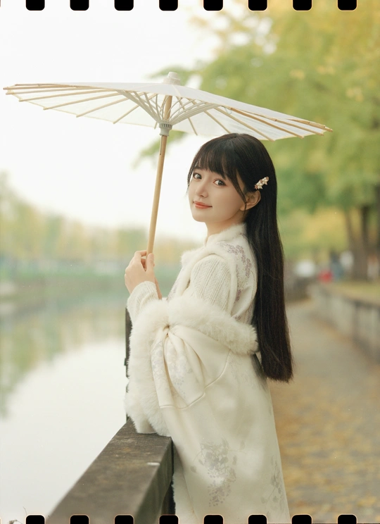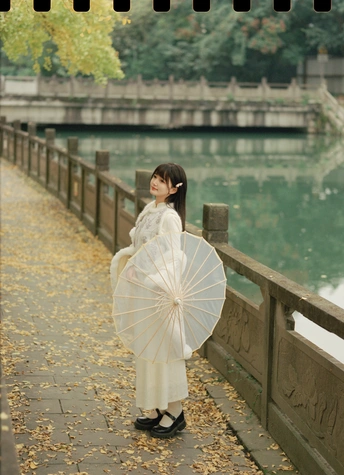 设备:玛米亚rb67 胶卷:柯达5207 在水边栈道走,突然觉得秋天是被泡软的 银杏叶飘在地上,像撒了层碎金箔 手里的纱伞半开着 风一吹 伞骨都带着轻悠悠的劲儿 连脚下的石板路 都被落叶衬得软软的