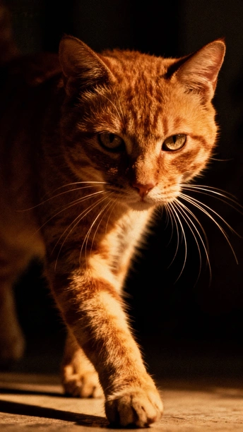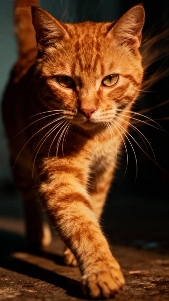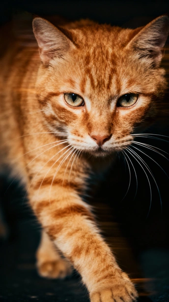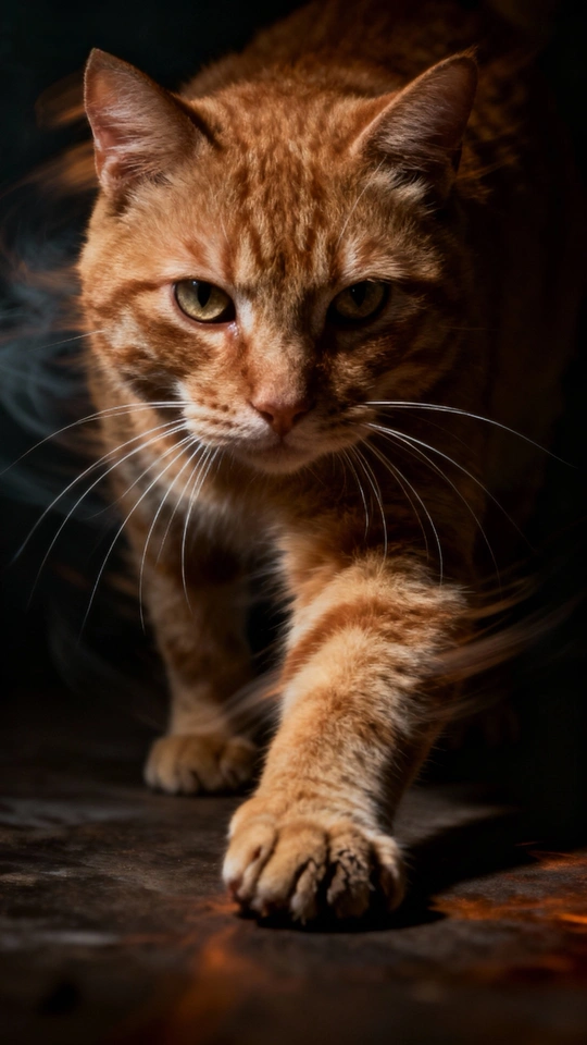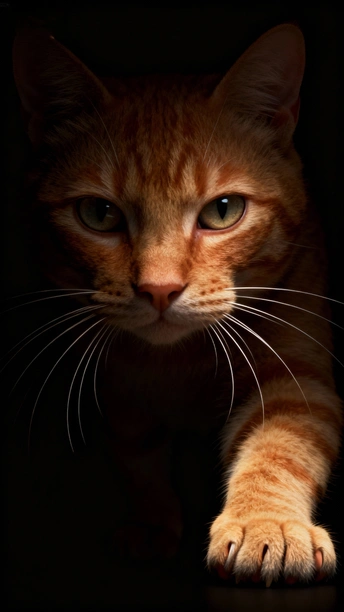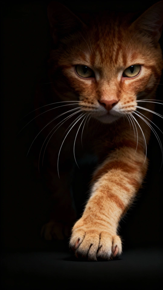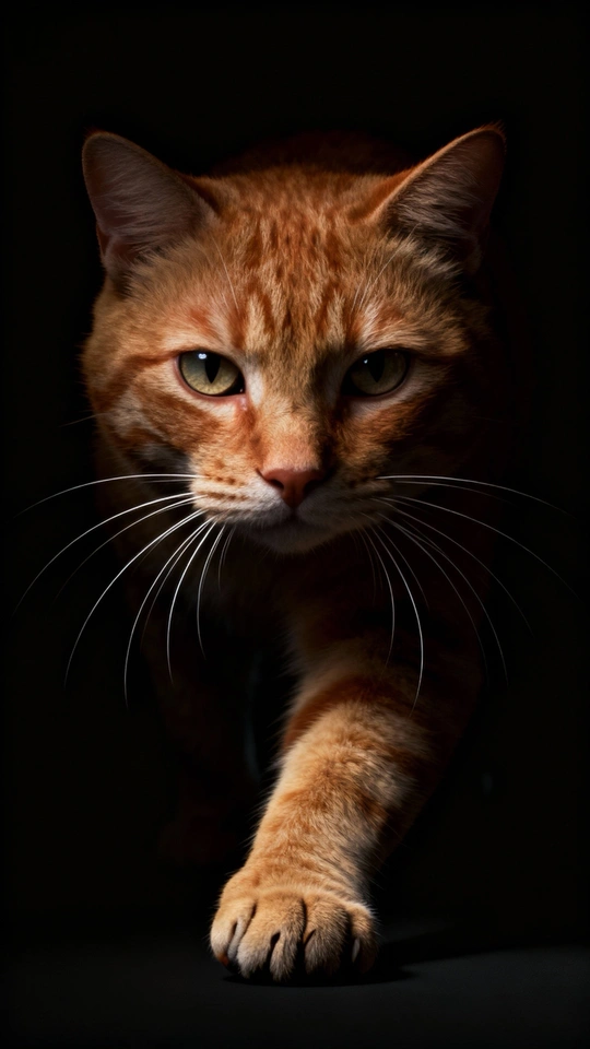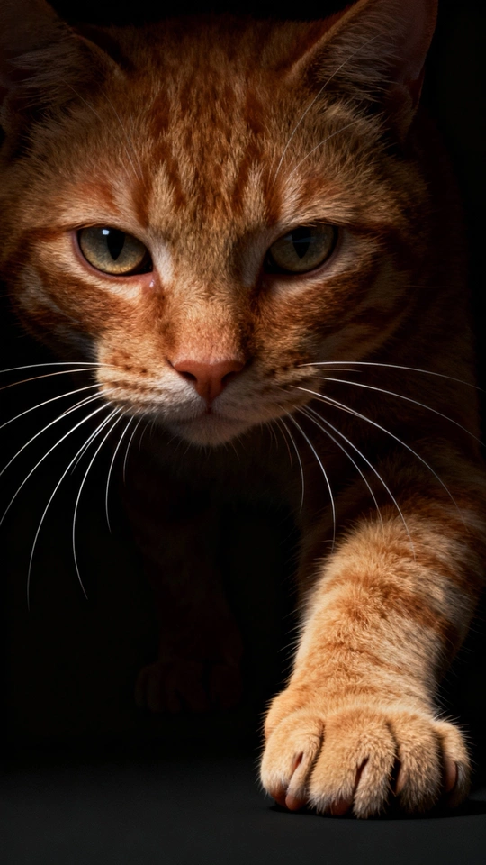 这张照片拍得真有气势,仿佛一只小老虎要从黑暗中跃出。先别急着挠我,听我说完! 色彩:橘色的猫咪在黑色背景的衬托下非常醒目,色彩对比强烈,视觉冲击力十足。不过,如果能稍微提亮暗部,让毛发的细节更丰富,就更完美了。 光影:光线集中在猫咪的脸部和爪子上,营造了神秘感。但是,光线再柔和一些,阴影过渡更自然,会显得更有质感。 构图:猫咪占据了画面中心,主体突出。如果能稍微偏离中心,留一些空间,会更有呼吸感。 后期处理:后期处理整体不错,但可以尝试调整一下对比度,让亮部更亮,暗部更暗,增强照片的层次感。 主题原创性:这种暗调风格的猫咪照片比较常见,但能拍出这种气势也不容易。可以尝试加入一些道具或环境元素,让照片更具故事性。 情感共鸣:猫咪的眼神犀利,仿佛在盯着猎物,让人感受到它的野性和力量。如果能捕捉到它更温柔的一面,会更有反差萌。 思想深度:照片展现了猫咪的原始本能,也引发了我们对宠物与自然关系的思考。可以尝试从更深层次的角度挖掘,让照片更有内涵。
