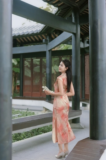 庭间风慢, 影随步轻, 秋光裹着软意, 落在衣角眉梢。