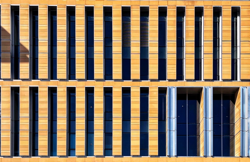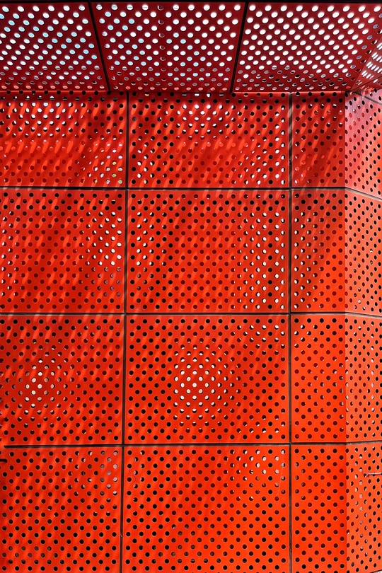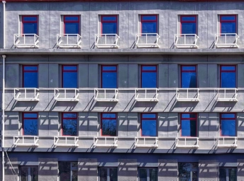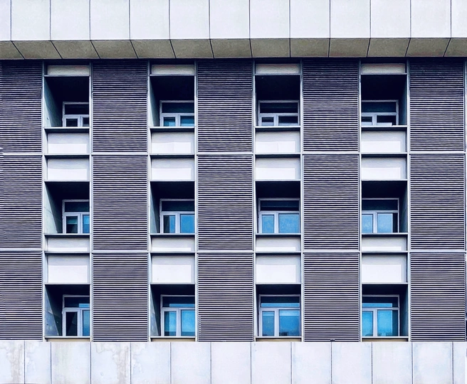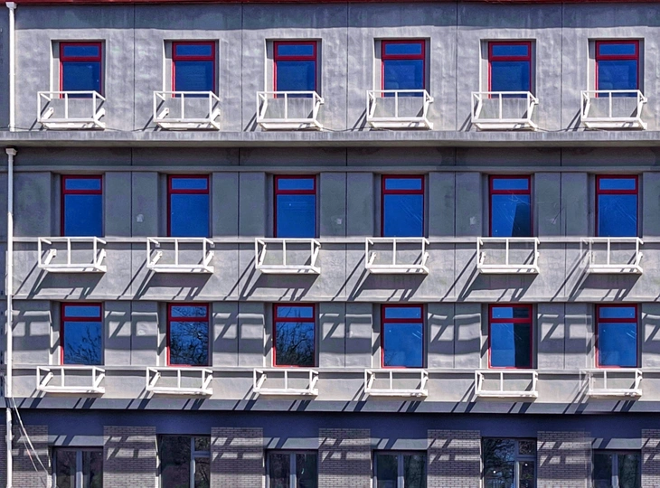 图六 色彩:红、蓝、灰的搭配比较经典,但整体色彩略显平淡,如果能通过后期调整,让红色更鲜明、蓝色更深邃,会更有视觉冲击力。 光影:光线角度不错,制造了阴影,增加了建筑的立体感。不过,光线略硬,如果是在柔和光线下拍摄,建筑的质感会更好。 构图:规整的建筑结构本身就具有形式美,构图上四平八稳,显得有些中规中矩。可以尝试寻找一些更有趣的拍摄角度,或者利用前景来增加画面的层次感。 后期处理:后期痕迹不明显,保持了照片的真实性。可以适当调整对比度和饱和度,让画面更生动。 主题原创性:建筑摄影比较常见,要拍出新意,可以尝试从细节入手,或者赋予建筑一些人文内涵。 情感共鸣:照片略显平淡,缺乏情感的表达。 可以尝试在画面中加入一些人物或动物元素,或者通过光影来营造氛围。 思想深度:照片主要展现了建筑的形式美,思想深度稍显不足。可以尝试通过建筑来表达对城市、历史或文化的思考。