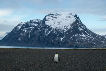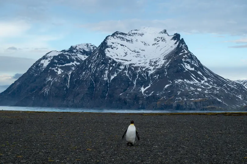 南乔治亚岛的风声永不停歇, 雪山与冰原在天际铺展开来, 而那只独行的王企鹅—— 仿佛一位沉默的旅人 在这世界尽头的孤独舞台上, 它的背影显得格外从容, 仿佛在告诉我们: 孤独并非寂寞, 而是属于勇者的宁静与自由。