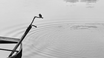 墨水轻漾织动,枝栖雀影凝静,禅意浸满黑白留白,空灵漫过风的纹理。