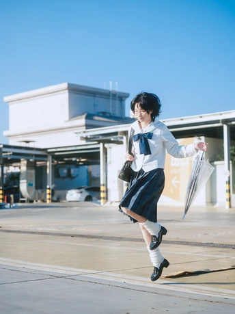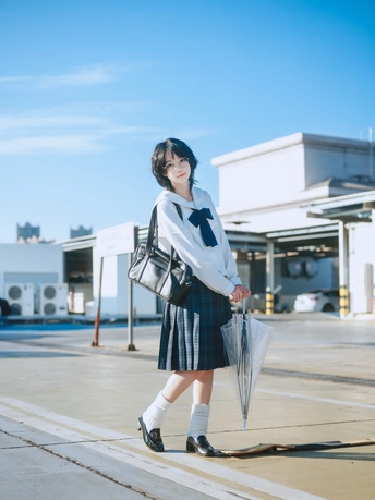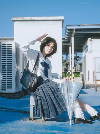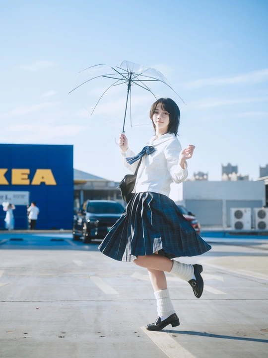 今天,和云朵打了个招呼。 逃往离天空最近的地方,穿上一身蓝白相间的约定,心情也变成了百分百的晴空。 透明雨伞不是用来挡雨,而是用来收集光线的魔术道具。 方形书包里,装满了整个午后的欢愉。 踮起脚尖,张开手臂,仿佛能拥抱到那份专属初冬的、清澈的自由。 地点:天河宜家天台 出镜:小曳 设备: Z6 50mm1.8s