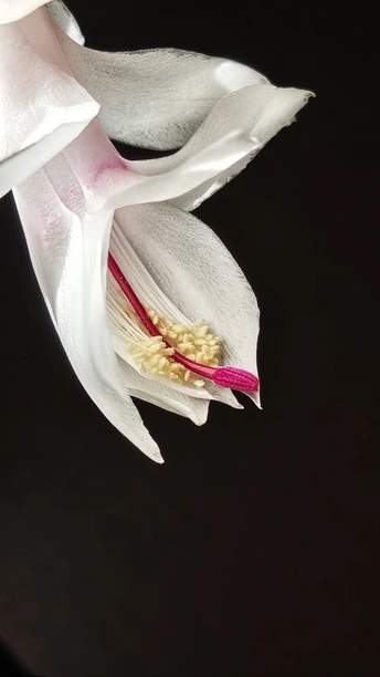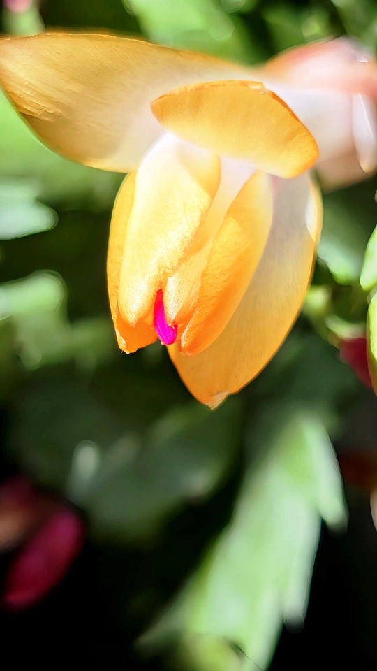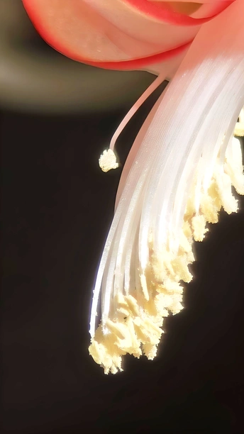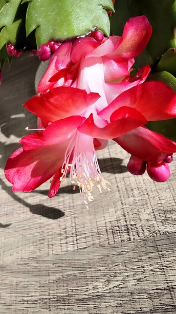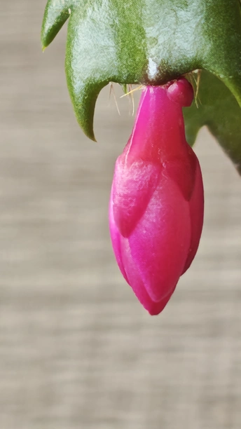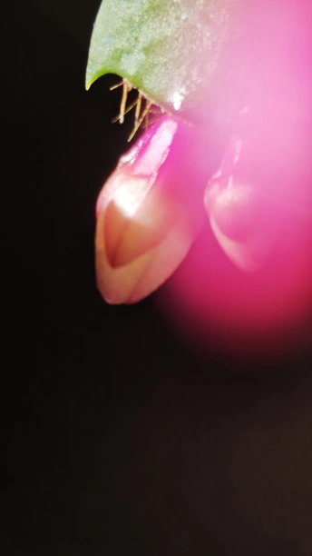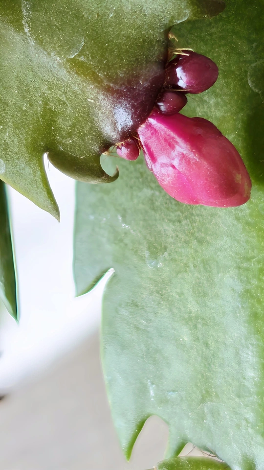 她,是初冬的傲骨,迎寒绽放,桃红花芯点缀着绢丝花瓣,一排排可爱的花蕾垂挂叶梢。初见之美,让人倾心沉醉不己!