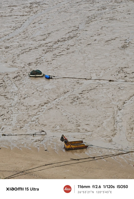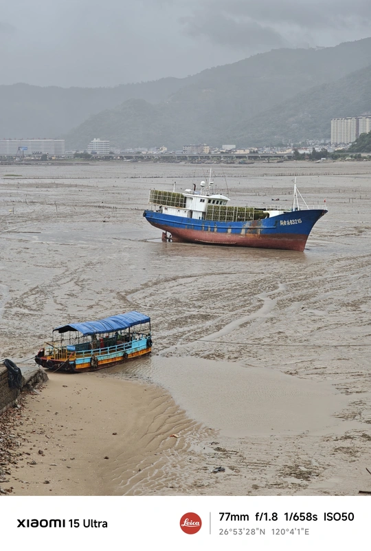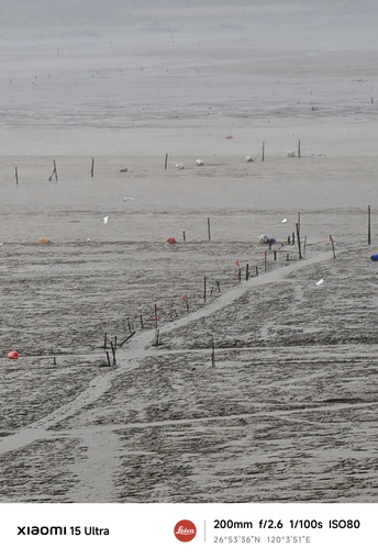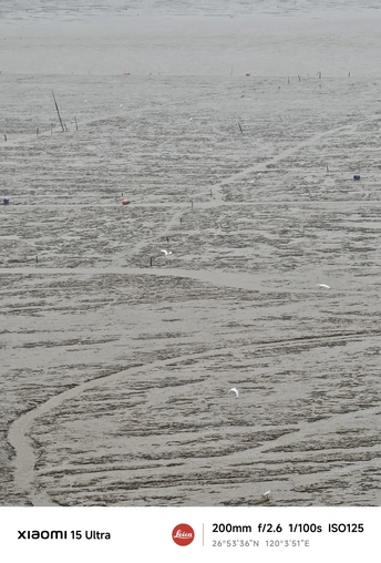 无阳的北岐,雾裹着灰调滩涂——泥沼是潮声的五线谱,木桩彩球是散断的音符,搁浅的船是拖长的休止符,白鸟扑棱是弱拍的轻颤。虹是雾里漏的泛音,所有声响都沉在湿软的泥纹里,等下轮潮来续奏。