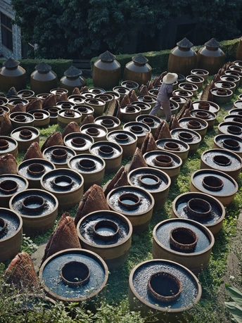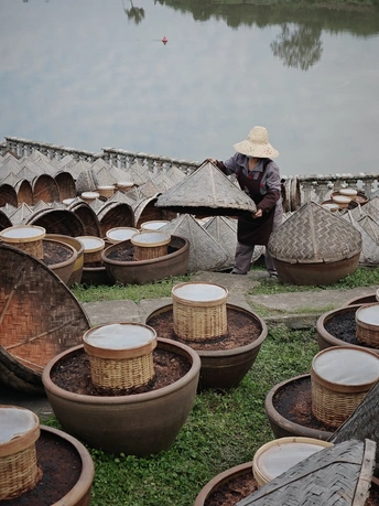先市酱油是四川合江县特产,中国酱油传统酿造“活化石”,拥有“中华老字号”“国家级非物质文化遗产”等四项“国”字号荣誉。始于汉兴于唐,以盐、黄豆、水为原料,经13道古法工序,3年以上“日晒夜露”自然发酵而成。 依托赤水河畔水质、温润气候及百年微生物群,其色泽红褐透亮,口感鲜甜醇厚,带焦糖香,是川菜灵魂调味。如今通过非遗观摩、研学体验及创新产品(如酱油冰淇淋),实现传统与文旅融合新生。