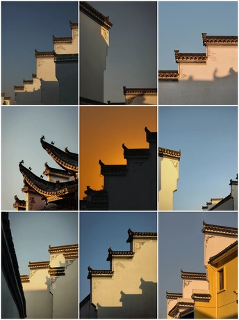 在徽派建筑的古巷深处,夕阳光影如诗如画。 斑驳的粉墙黛瓦,被夕阳镀上一层金边。余晖顺着翘角的屋檐流淌,像岁月的金纱轻轻覆盖。光影透过雕花窗棂,在屋内地面投下几何图案,似古老的密码诉说着往昔故事。 墙角的青苔在夕阳下泛着微光,与沧桑的砖石相映成趣。一位老者走过,身影被拉长,融入这夕照的徽派梦境,这一刻,时光仿佛静止,徽派建筑在夕阳光影中散发着永恒的韵味。