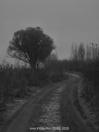 这张黑白照片营造了一种忧郁、静谧的氛围,颇具表现力。下面是针对这张照片的一些评价和建议: 色彩:黑白影调简化了色彩干扰,突出了光影和线条。影调层次较为丰富,但可以尝试在后期中进一步拉开对比度,使画面更具冲击力。 光影:光线柔和,营造出朦胧感。前景的泥土路和远处的树木都沐浴在柔光中,细节略有损失,建议尝试在不同天气和光线下拍摄,捕捉更生动的光影效果。 构图:蜿蜒的道路引导视线,将观者带入画面深处。主体树木位于画面左侧,与右侧的植物形成平衡,构图稳重。但主体树木稍显平淡,可以尝试寻找更具形态或故事性的树木作为拍摄对象。