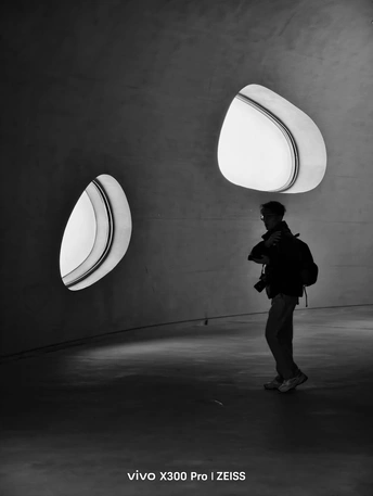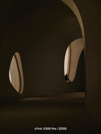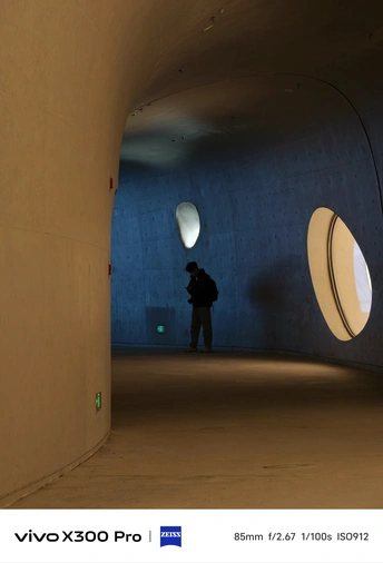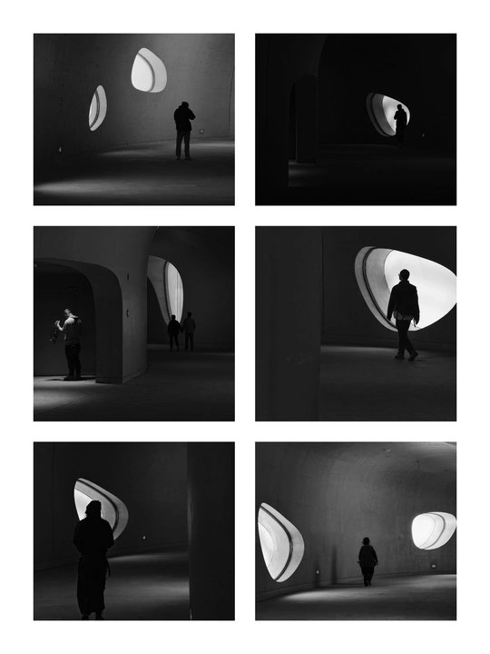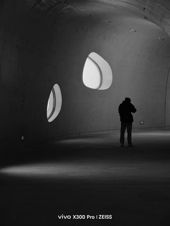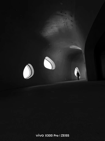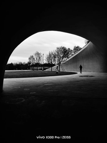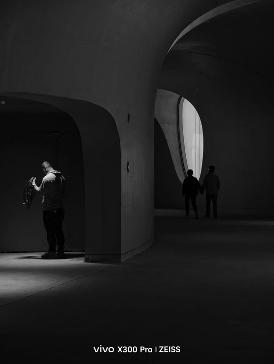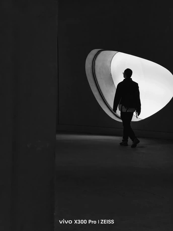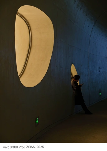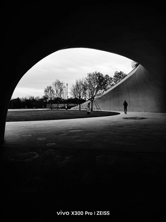 深圳湾的风, 裹着海的潮气钻进修长的通道里。 椭圆窗像被裁碎的浪, 把天光滤成柔雾, 行人的影子在明暗里舒展, 脚步轻得像踩在云絮上。 黑白色调里,好像有了新的意义。 🔵Shot on vivo X300 Pro