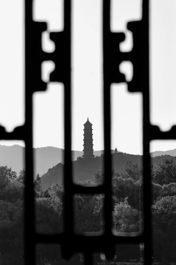 透过颐和园的窗棂,玉峰山的倩影定格在镜头里,别有一番韵味。