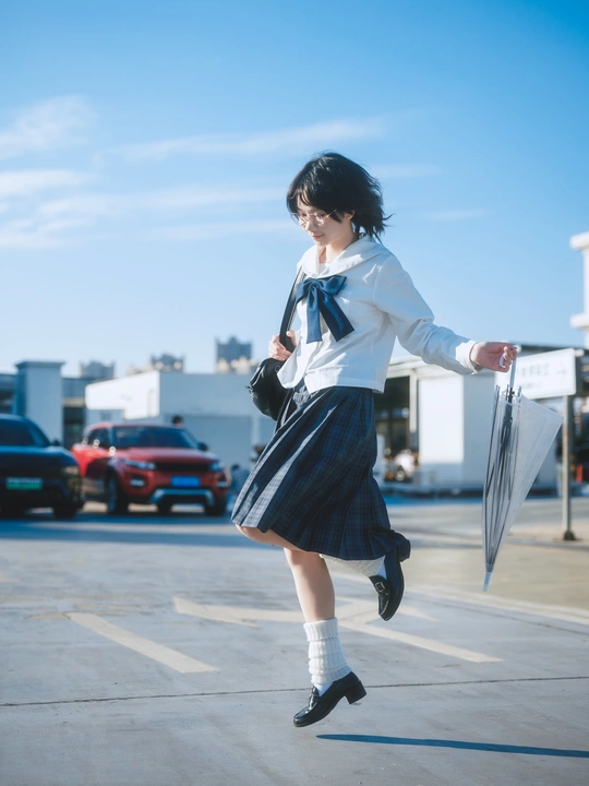 我在天台踮脚,转身,跳跃。 试图把云朵装进伞里,把清风系在领后的飘带上。 这一刻,我不是我,是闯入二次元缝隙的漫游少女。 继续更新一组前段时间在宜家天台拍摄的JK写真。 出镜:小曳 设备:Z6 50mm1.8s