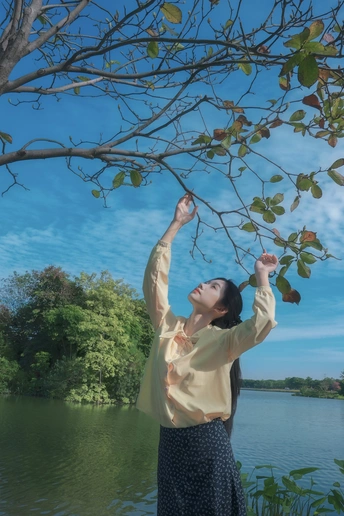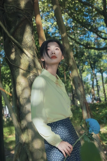 风歇树影沉, 午后留白半分柔, 光影漫过肩头时, 时光也慢了半拍。