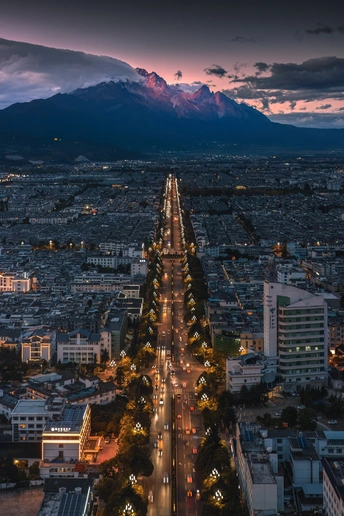 晚秋,当玉龙雪山的山尖披上落霞时,丽江长街灯缕渐明,车流曳着光漫开,街巷裹着暮归的烟火。