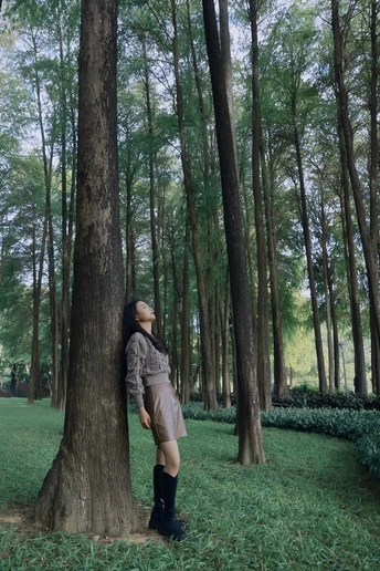 把针织衫揉进树影,风替森林织半程松弛梦。 厚着脸皮跟大树借阴凉,呼吸都裹着草木软乎气。