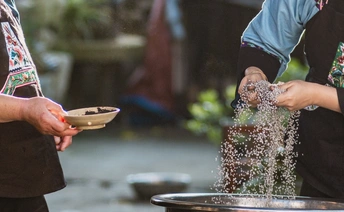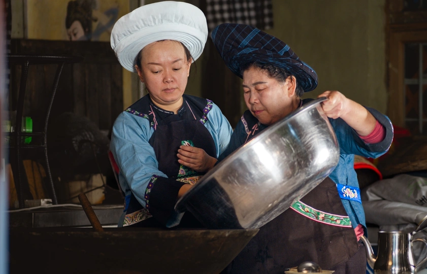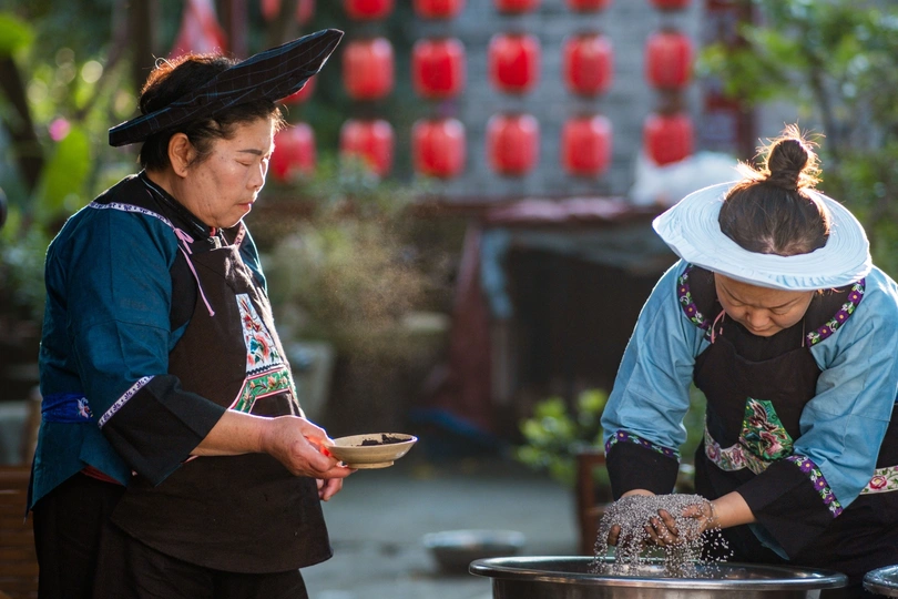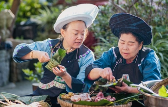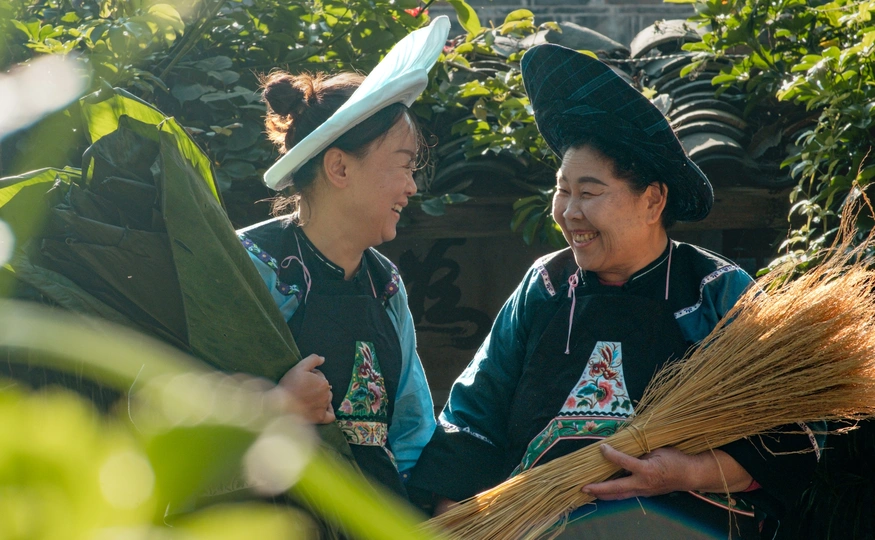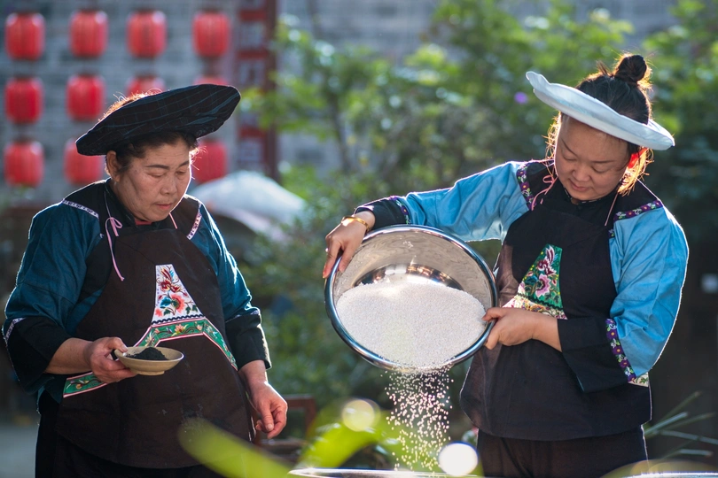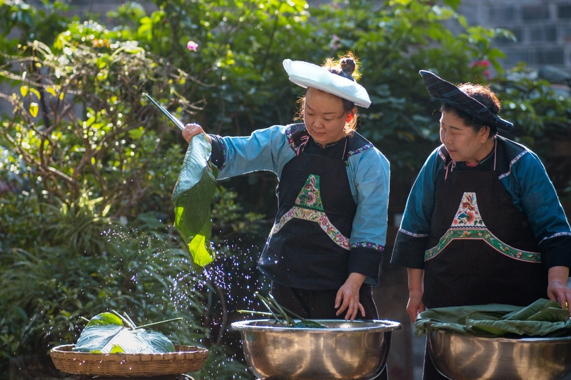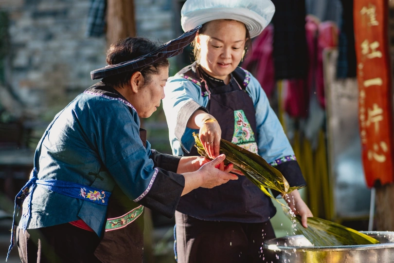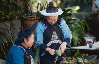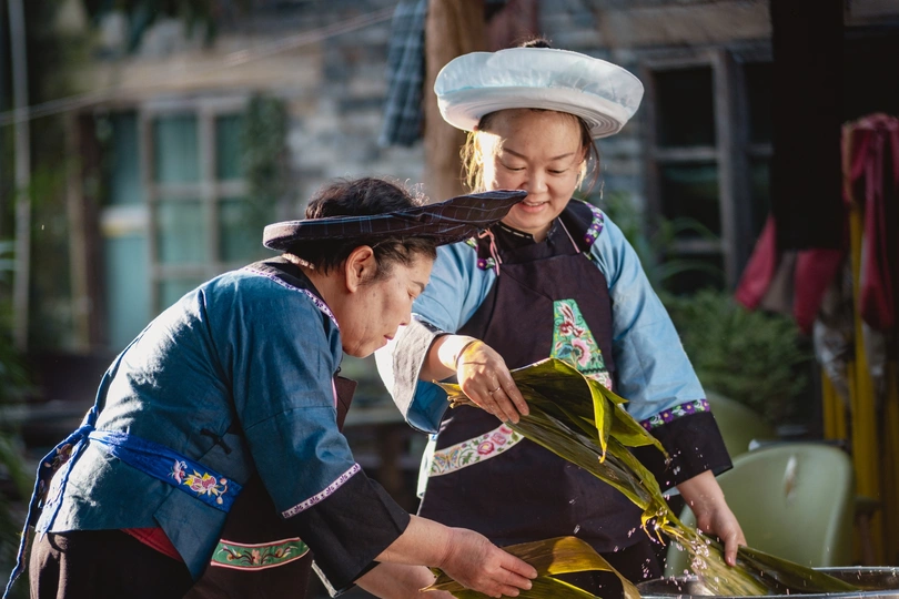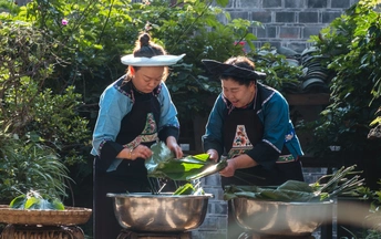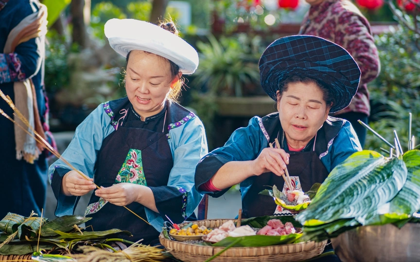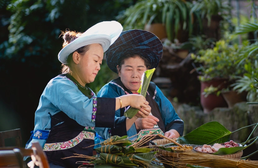 2025年11月16日,贵州省黔西南布依族苗族自治州贞丰县,古城的晨光温柔洒落,青石板路映着暖金光影,陆朝英的身影在古色古香的院落中格外动人。作为斩获“贵州省著名商标”、“贵州老字号”、“省级非遗代表性项目” 等多项荣誉的匠人,被称为“一代粽师”的陆朝英在燃烧的稻谷烟火中,指尖捻起浸润的糯米,裹上清香的粽叶,动作娴熟如行云流水,将百年布依灰粽技艺细细传授给家人。 “胖四娘” 的招牌是贵州省非物质文化遗产布依糯食制作技艺第四代传承人陆朝英用数十年匠心守护的非遗名片,被授予“中华名粽”、“中国名小吃”等多项荣誉。凭借对传统技艺的坚守与创新,她不仅让品牌荣获多项行业大奖,更让布依灰粽走出大山,成为承载民族文化的美食符号。此刻,她耐心指导后辈折叠粽叶、填充馅料,将祖辈传下的草木灰腌制秘方倾囊相授,指尖的温度透过粽叶传递,也将这份沉甸甸的荣誉与文化责任代代相传。 光影流转间,粽叶的清香与糯米的软糯交织弥漫。陆朝英的眼眸里,映着后辈求知的神情,也藏着非遗传承的笃定。那些闪耀的荣誉,是对她匠心的嘉奖,更是文化传承的见证。